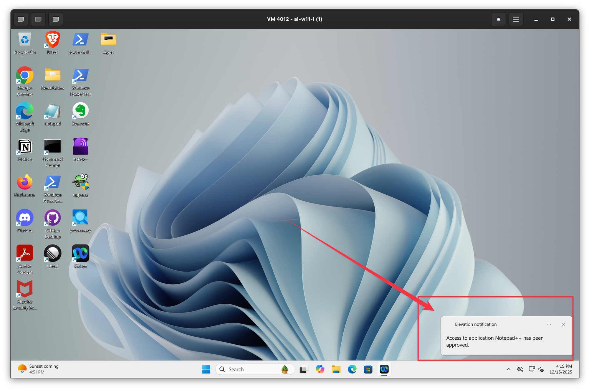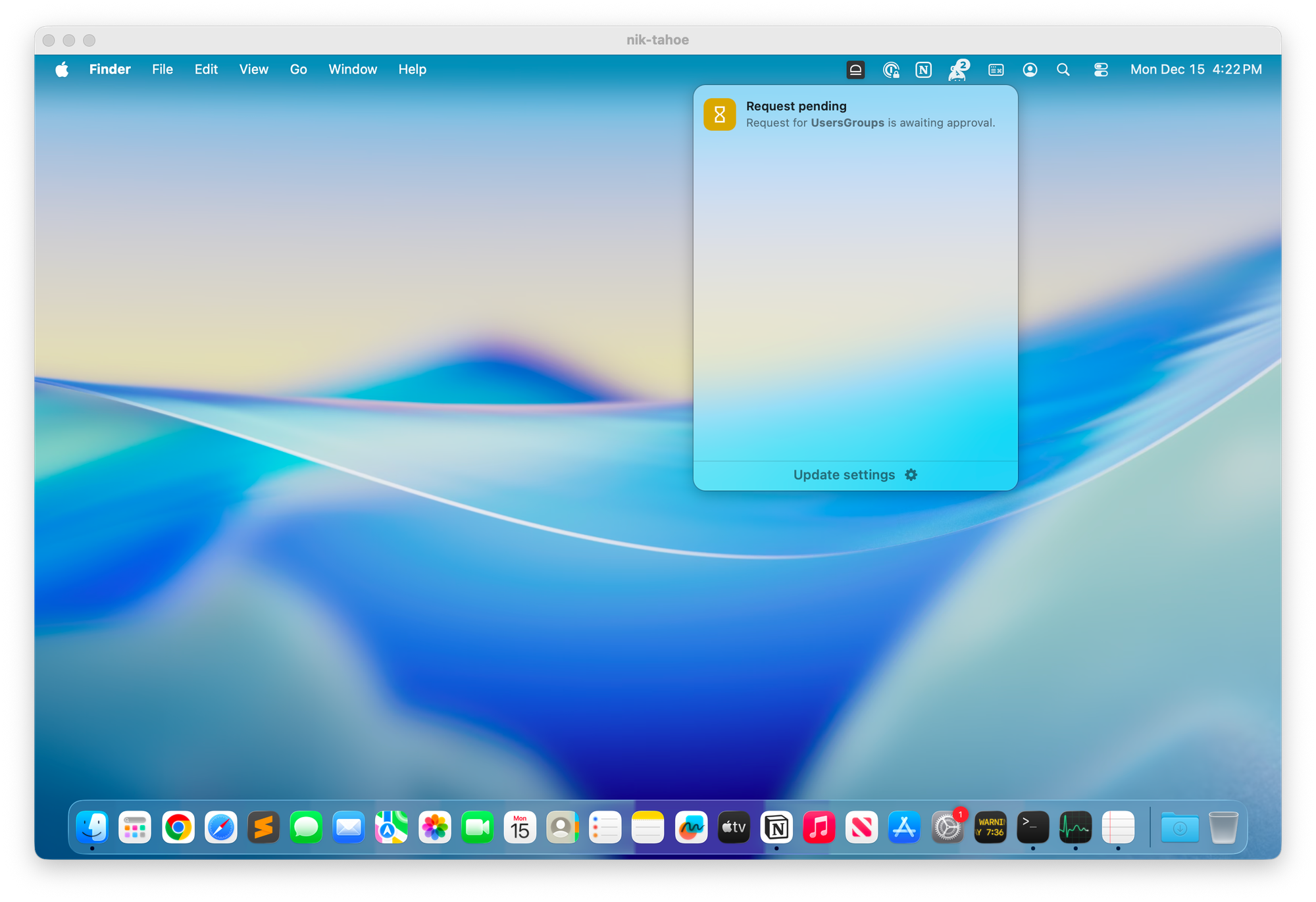 - Push notifications - when the elevation request is approved or denied, idemeum will send a push notification back to Windows or macOS agent. If notifications are enabled on the desktop, the user will see a pop up notification detailing the request and the outcome.
